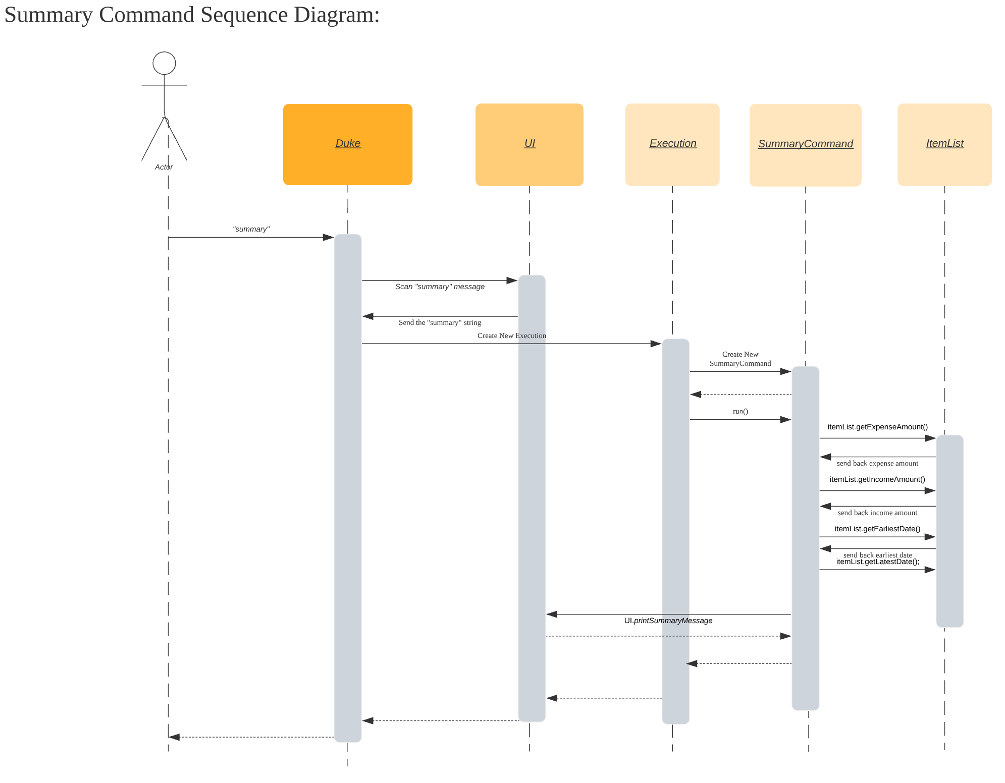 UI scannedsummarycommand from user input,Executioncreate a newSummaryCommandandrun()to print summary informtion.