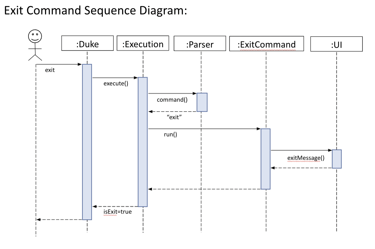 The working flow of the exitCommand is shown in the sequence diagram below.